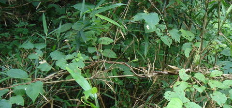 ギンレイソウ群落 やや湿り気のある腐植質の多い所に生える。ホタルも多いところだ。