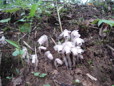 ギンレイソウ ギンリュウソウとも呼ばれる。土壌菌から栄養をもらうとか、光合成はせず。 別名、ユウレイダケ