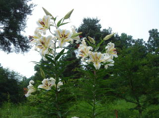 山林にもユリのつぼみがあるが、ここは開けたところでユリも見事だ。ヤマユリが咲くと夏を感じる。