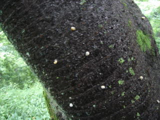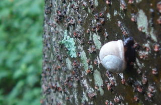 雨の中、谷筋を上り詰めたところ ホタルの幼虫の餌ともなるらしい。 直径は5mmから8mm位。