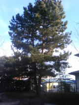 根元はひとつで幹から二又にわかれる。ただ残念なことに この松は大分枯れてきて
