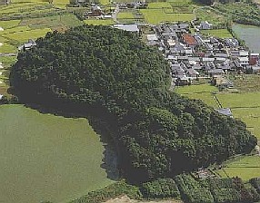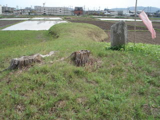 進行方向左、山の方、その田んぼの中をよく見ると、小さな前方後円墳が見えるはずだ。