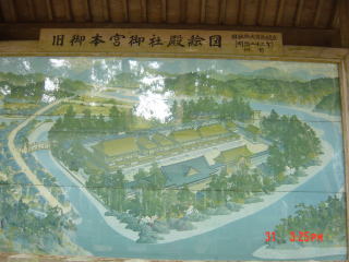 古代の本宮は中州にあったが、洪水で流されて、今は高台に仮すまい。