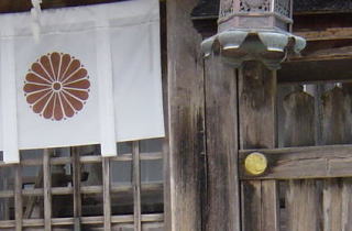 菊の紋(八重十六菊?)の片隅に「巴」紋