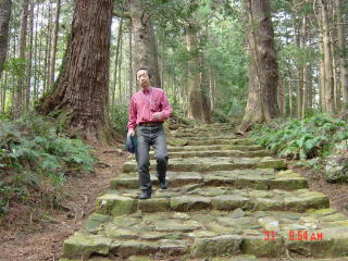 那智大社までは熊野古道の一部を少し歩く。 参道には土産もの屋が立ちならび、賑やかである。