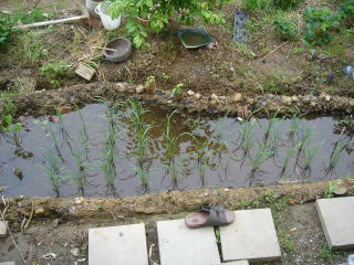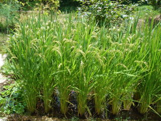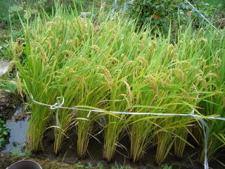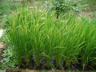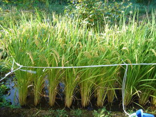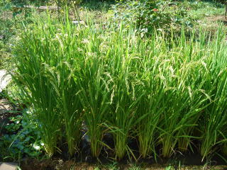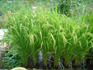 ミニ水田も遅ればせながら 稲穂がちらほら