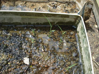 苗の生長はゆっくりだ。また籾を数多く植えた割には、葉が出てきたのは少ない。