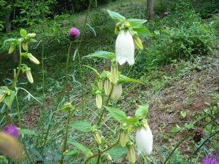 卯の花 ホタルブクロ とアザミ そろそろ、ホタルの成虫が地下から出てくるときだ。ホタルを捕まえてこの蛍袋にいれて遊んだとか? クモキリソウ 花がクモが足を伸ばしているような感じ ジガバチソウ すでに花の時期は過ぎたかな? 花の色で、黒色が「ジガバチ」を連想させるとか。 ジガバチとはどんな? 武隈の里