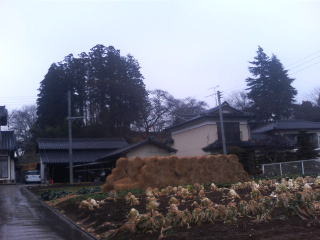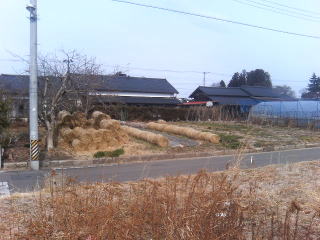 この畑とかは宅地に造成されず、昔の面影を伝える。稲わらが積み上げられ、