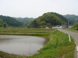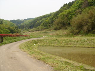 里山の一番奥、谷は狭まって、右手は水田、いわゆる「谷戸田」、左手は小川が