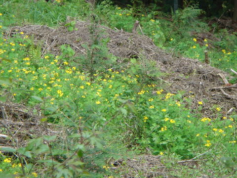 神社の斜面にヤマブキソウの群落