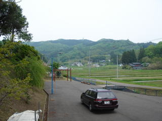 八雲神社駐車場 中央の山は愛宕山 標高291m